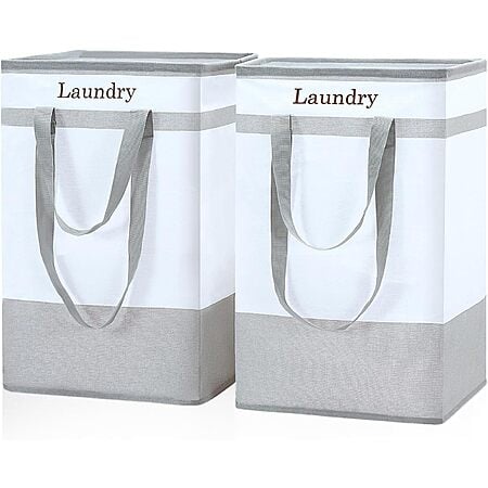 2-pk 78L FairyHaus Collapsible Laundry Basket w/ Easy Carry Handles (Gray)