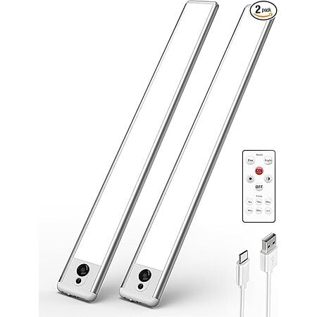 2-Pack EZVALO 14.5" Rechargeable Under Cabinet Lights with Motion Sensor and Remote