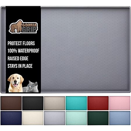 Gorilla Grip 18.5"x11.5" Waterproof Raised Edge Silicone Pet Feeding Mat (Gray)